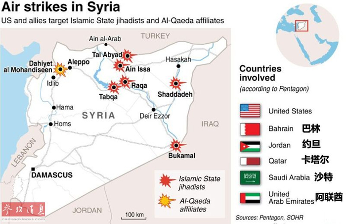 图为2014年9月,参与空袭叙境内恐怖组织目标的美军及中东国家。