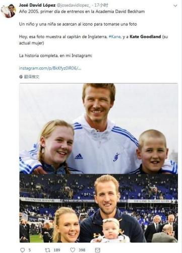 故事是这样的,足坛巨星贝克汉姆日前在其社交媒体账号上晒出了一张13年前的老照片,照片中的贝克汉姆搂着两位笑容灿烂的孩子,他左手揽着的就是11岁的哈里 凯恩,而他右手揽着的女孩名叫凯特 古德莱德(Kate Goodland)。