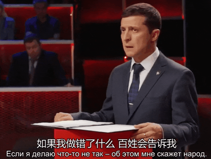 乌克兰现任总统泽连斯基还是喜剧演员的时候,在他的影视作品《人民公仆》中就有一幕,现在看来,意味深长。