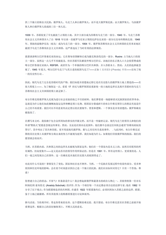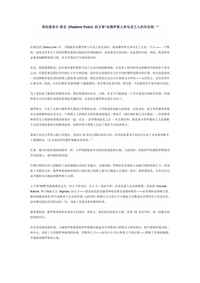 俄罗斯,发了一篇文章(署名普京)