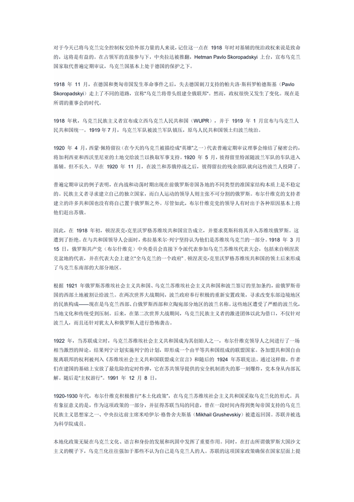 实际上,乌克兰片面地选择与俄罗斯割裂历史联系,并不是上策。全然抛弃与俄罗斯共同的历史,最终会造成乌克兰的历史虚无主义。