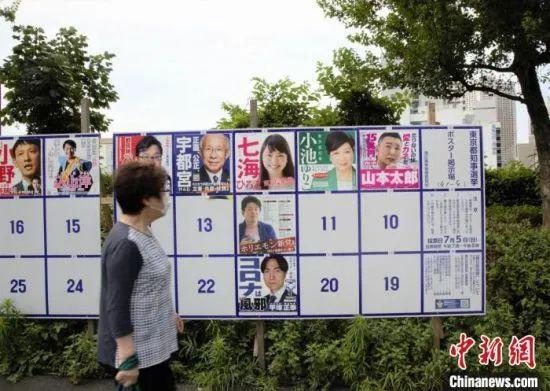 东京居民走过街头的候选人宣传海报板。