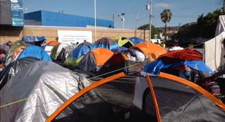 在美墨边境,与加州接壤的墨西哥边境城市蒂华纳,上千非法移民在墨西哥境内安营扎寨。其中不少人还是无父母陪伴的未成年人。