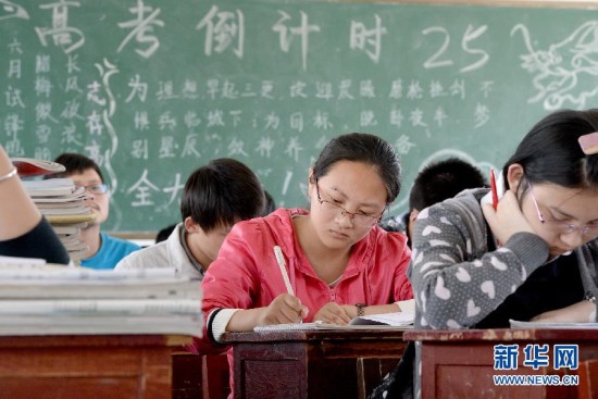 安徽省合肥市肥西县肥西中学2011级宏志班的学生们在课堂上做笔记,迎战2014年高考(2014年5月13日摄)。近日,国务院印发《关于深化考试招生制度改革的实施意见》,部署深入贯彻落实党的十八届三中全会关于推进考试招生制度改革的要求,进一步促进教育公平,提高选拔水平。《实施意见》的出台,标志着新一轮考试招生制度改革全面启动。新华社记者 郭晨 摄
