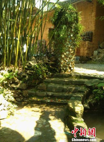 图为景德镇三宝陶艺村院内一角,青石板路上,间或有陶瓷碎片组成的图案镶嵌其中。 范文娟 摄