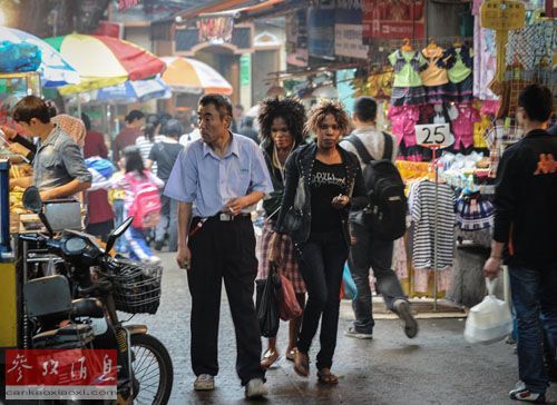 资料图:非洲人与广州居民一起穿梭于广州小北路的摊铺间。新华社记者 刘大伟 摄