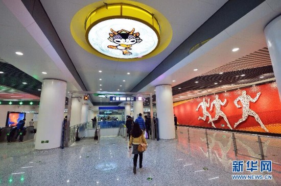 北京地铁15号线奥林匹克公园站(12月28日摄)。 12月28日,北京地铁6号线二期、7号线、15号线西段、14号线东段开通试运营,北京的轨道交通运营里程再添62公里,共计达到527公里。新华社记者李鑫摄