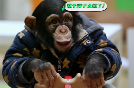 还有一次,一只身穿牛仔裤和套头衫的小黑猩猩被带到一只熊崽面前。熊崽使劲打了小黑猩猩一下,而小黑猩猩拿着一根棍子追小熊。制作人员还在黑猩猩的头上加了一个思维泡泡:“少废话,看打。”