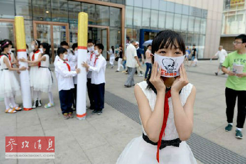 在中国,吸烟每年造成大约120万人死亡。图为2014年5月安徽合肥的小学生在街头宣传禁烟。(资料图片)
