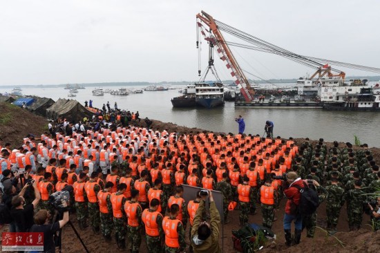 据路透社6月7日报道,中国官员和救援人员当日为“东方之星”号沉船死难者默哀。目前已确认431人遇难,仍有11人失踪。