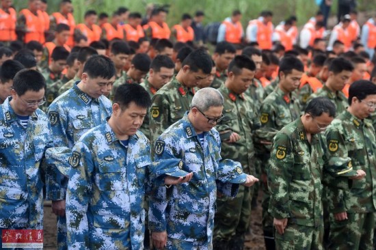报道称,随着汽笛声响起,数百名官兵、警察和其他救援人员脱帽鞠躬向死难者致哀。官方媒体中央电视台的画面显示,驻留在附近监利县的遇难者家属通过电视观看祭奠活动时也一道鞠躬哀悼。