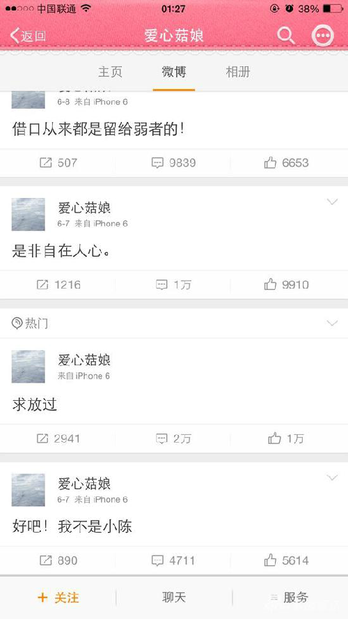 @爱心菇娘微博截图(图片来源:香港《南华早报》)