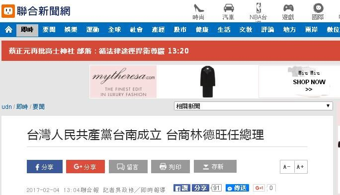 台湾“联合新闻网”报道截图