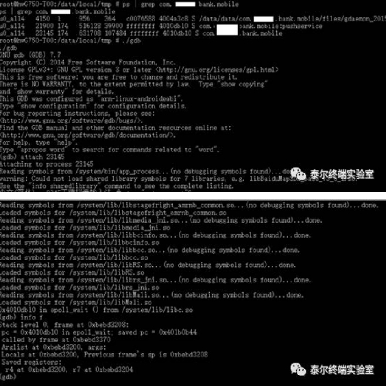 手机银行APP可以通过GDB、IDA等调试器进行动态调试,黑客可利用GDB或IDA等调试器跟踪运行程序,并且执行查看、修改内存中的代码和数据等行为,从而获取用户的敏感信息。