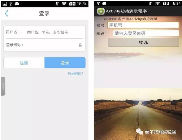 (2)手机银行APP运行时关键Activity组件容易被劫持