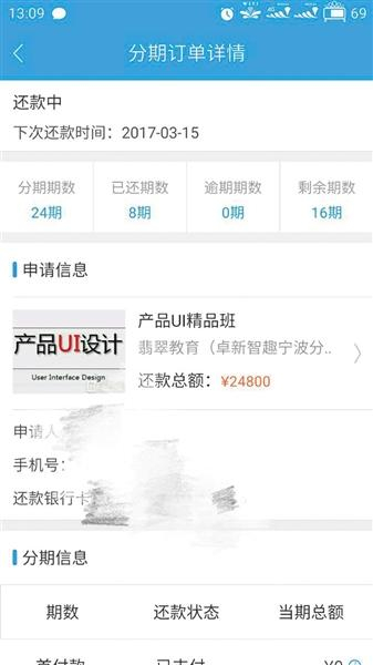 王小姐在课栈APP上的贷款信息。
