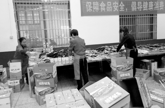 3月28日,浏阳市小飞燕食品有限公司,工人们正在打包食品。图/本报记者