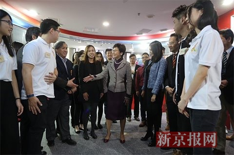 记者会后,林郑月娥与在京港籍学生代表和商界代表交流。新京报记者 侯少卿 摄