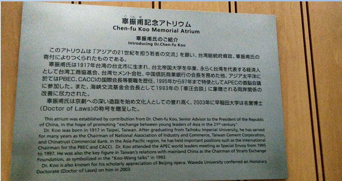 辜振甫纪念中庭介绍牌匾