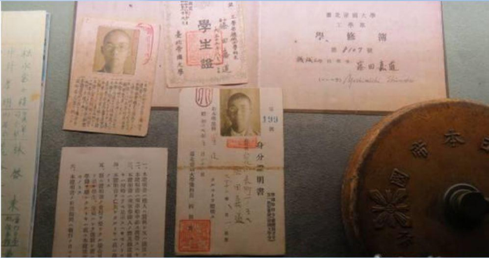 台大校史馆中展出的台北帝大时期学生证