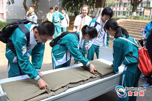 活动中,师生和家长们在官兵的带领下,观看了英雄导弹营记录影片,参观了部队荣誉室、部队营区,并体验了将被子叠成棱角分明的“豆腐块”,亲身感受紧张有序的部队生活。