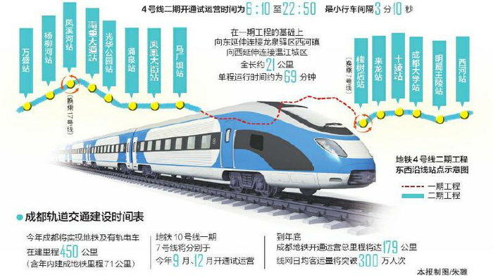 成都地铁4号线二期工程6月2日起正式开通试运营