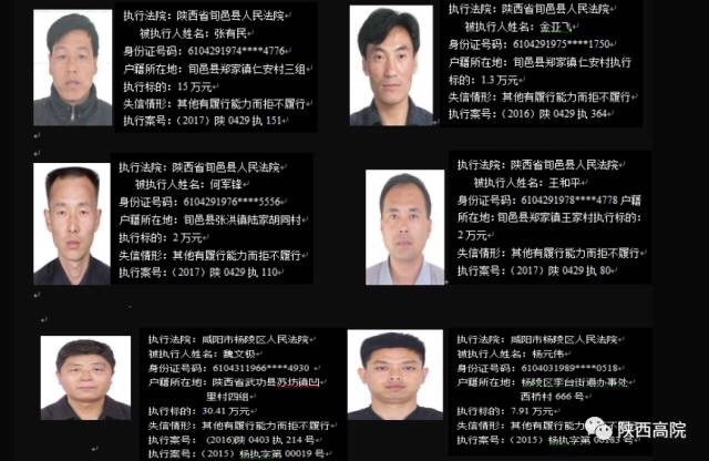 曝光!陕西省高院集中公布190名“老赖”名单