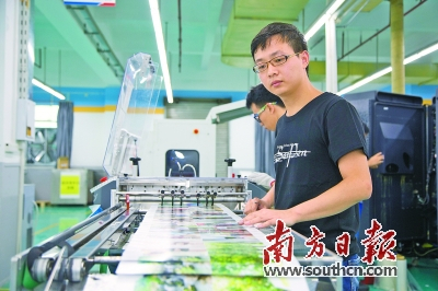 季福阳在生产线上操作打印设备。南方日报记者 孙俊杰 摄