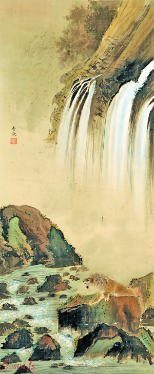 何香凝在日本女子美术学校学习的是日本画撰科高等科,师从端馆紫川,专攻山水花卉,并在日本帝室画师田中赖璋名下研习狮、虎等动物画。经过4年学习,她初步掌握了日本画的基本技法,熟练地描绘动物、花卉、风景等,突出的代表作有狮、虎、鹿、猴和菊、兰等,尤其常以雄狮猛虎来表现中华民族的觉醒。