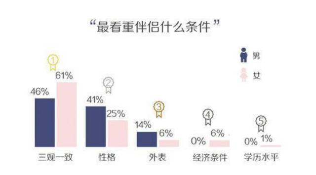 《中国95后数据报告》中关于伴侣条件的调查,大部分95后最看重"三观一致"。