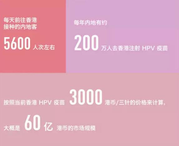 据旅医网统计,2012年以前,香港的HPV疫苗还主要供应香港居民注射,近年来内地客户激增,2017年内地赴香港接种HPV疫苗的人数已经占香港大型医疗机构接种疫苗总人数的70%以上。