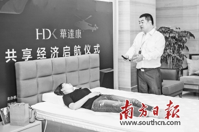 一名女士在体验共享床垫的增值功能。南方日报记者 孙俊杰 摄