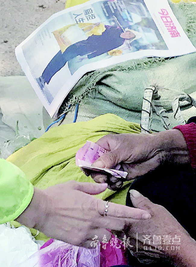 年轻女子买了土豆、芸豆,而且还包圆了黄瓜和丝瓜。就在“扁担奶奶”算钱时,她从兜里掏出100元钱,“奶奶,我也没带零钱,这些钱不用找了。”她边说边放下100元钱转身就走。