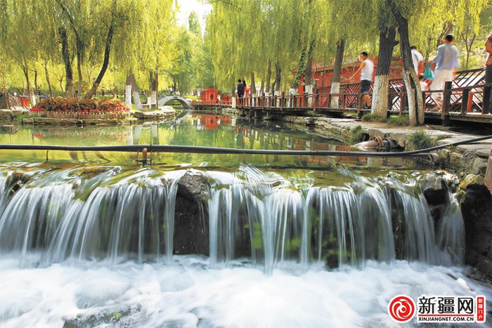 水磨沟公园内的水磨河二期改造工程完成后的景观(9月6日拍摄)。(资料图片)