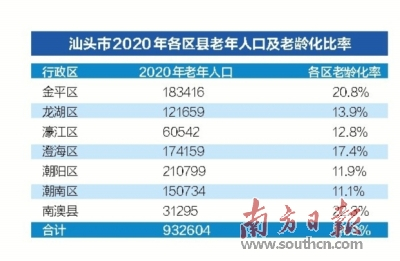 汕头市统计局提供数据显示,汕头已经达到老龄化社会。那步入老龄化社会的汕头,老年人口比例究竟是多少?各区的老龄人口又呈怎样的分布?一组数据来看汕头老龄化现状。