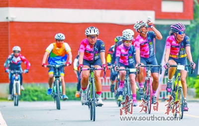 参与群英故里香山古道骑行活动的选手从中山纪念中学校道穿过。