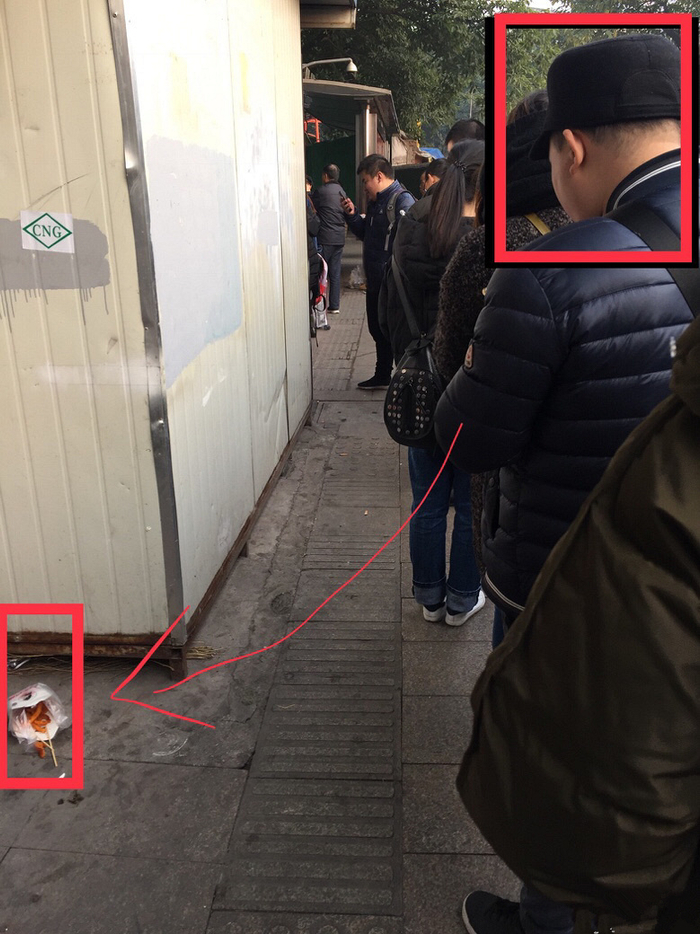 干净整洁的路面上顿时多了一坨白花花的垃圾,看得人十分扎眼。