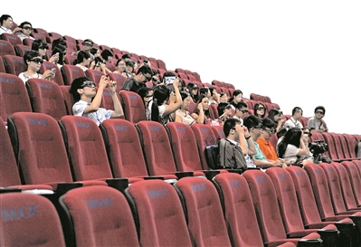 部分观众戴上3D眼镜,等待电影的开始。