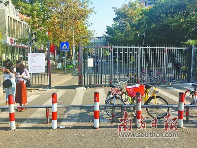 另外,第三饭堂旁的门彻底关闭也让很多同学感到头痛。记者当日下午来到该门口,发现这里大门紧锁,附近也没有站岗的保安。该校门通大学城内环路,附近宿舍的学生晚上可以通过此门到内环路跑步。“现在这里锁了,去跑步要兜一个大圈,而且这个门离公交车站比较近,现在坐车都要早起。”王同学说。