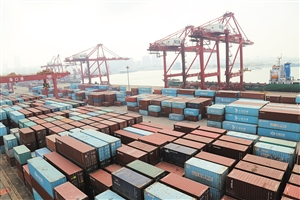 悦耳的汽笛声中,一艘艘巨轮有序驶入港池,稳稳地靠上泊位。在海口港集装箱码头,整齐的集装箱货柜,紧随塔吊的“节奏”,装卸作业热闹非凡。