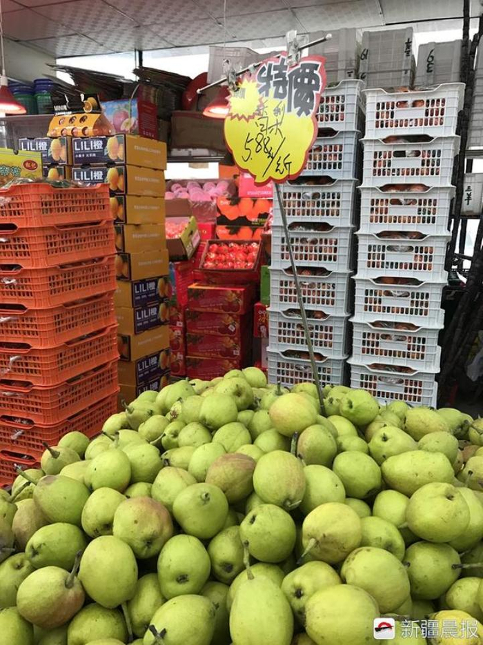 在碱泉街南三巷的美好生活生鲜大卖场店内,香梨在做特价