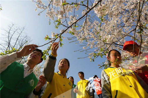 当天下午,盲童还与志愿者们一起感受了春天。“我闻到花的香味了!”进入南山植物园,不少盲人孩子激动地说。