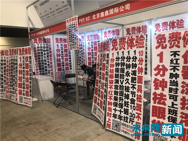 4月初未来网记者走进了北京春季美容博览会现场,初春北京稍有暖意,但展会现场,此起彼伏的音乐、叫卖声混合着人群中特有的焦躁,让人感觉恍若夏季。