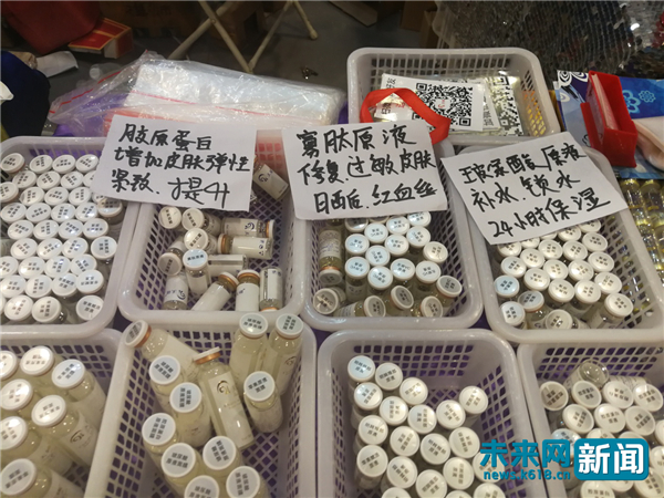 北京美博会现场下销售的胶原蛋白原液、玻尿酸原液、水光针、修护冻干粉等产品。未来网记者 刘璐 摄