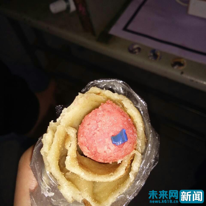 有学生在学校食堂购买的烤肠中发现橡胶皮(受访者供图)