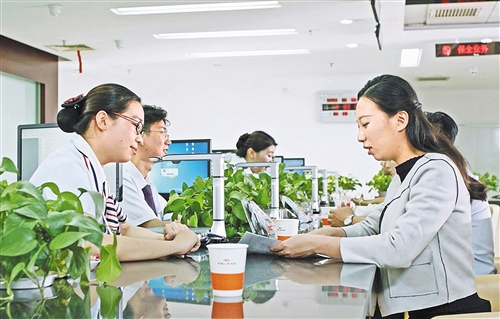 在中国人寿保险北京分公司营业厅里,工作人员正在给顾客办理人身保险相关业务。 记者 李华林摄