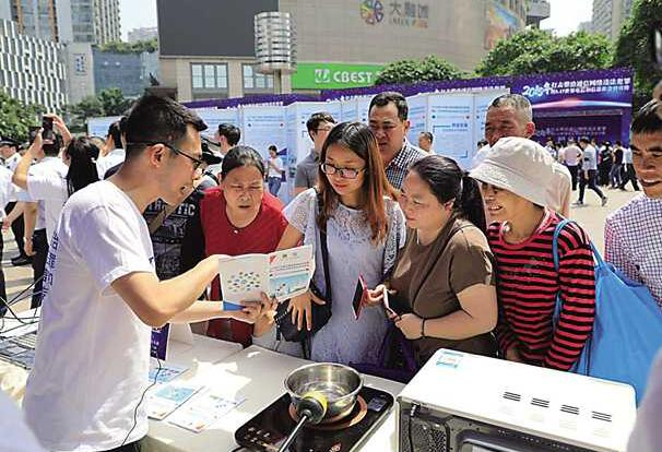 市民现场体验家用电器与通信基站辐射的对比测试。