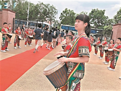 欢欣“鼓”舞:佛山协同(国际)学校用非洲鼓送考。通讯员田斌摄