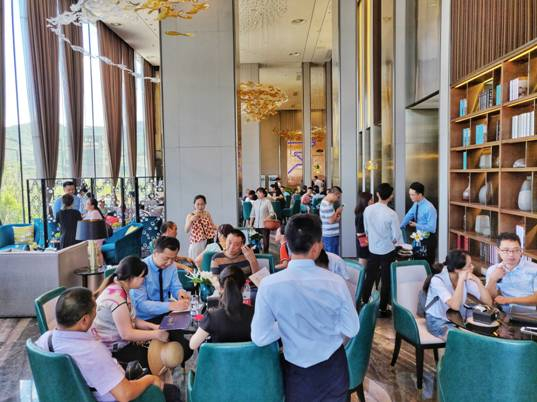 现场人潮涌动,鼎沸之声不绝。在沙盘区聚集众多到访的客户,置业顾问耐心的解答着每位客户的提问,并为大家讲解项目的规划理念及优质的配套设施,力求让每一位客户感受宾至如归的热情。