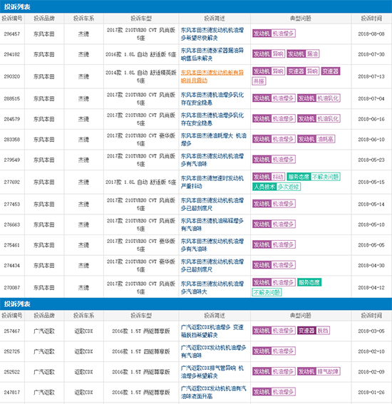 杰德与讴歌CDX也因“机油门”屡被投诉